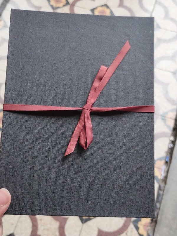 Tapas duras forradas en tela o papel. Cierre con cintas